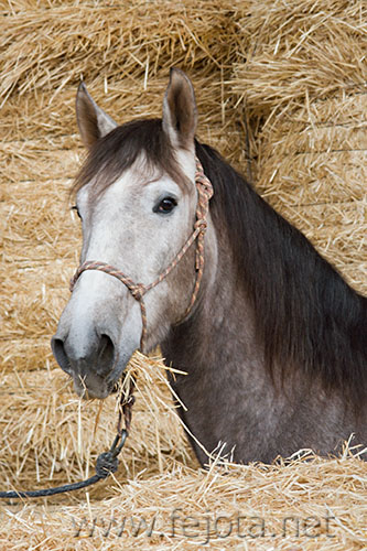Potro caballo tordo paja naturaleza fauna equino establo cuadra vertical