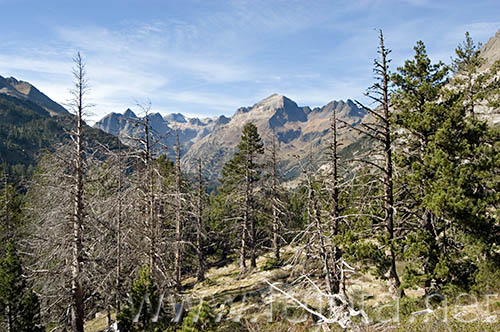 Pinos cumbres cimas picos cielo Pirineos Benasque Huesca