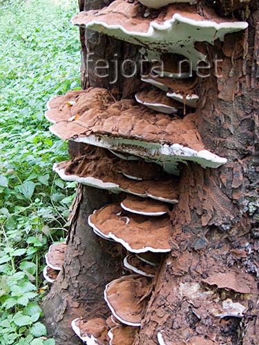 Catalunya Espinelves Girona Naturaleza detalle flora gonoderma hongos ortigas tronco vertical rbol