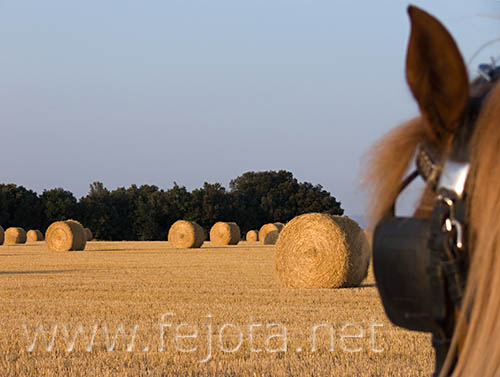 Caballo Catalunya Girona Seriny anteojera paisaje paja rural siega