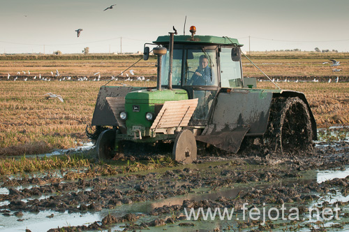 Amposta Catalunya Delta_del_Ebro Tarragona arrozales aves cultivo fauna gaviotas paisaje parque_natural rural trabajador tractor