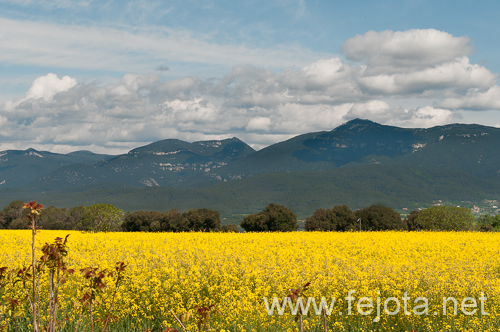 Catalunya Girona Seriny amarillo cielo colza cultivo montaña nubes paisaje rural