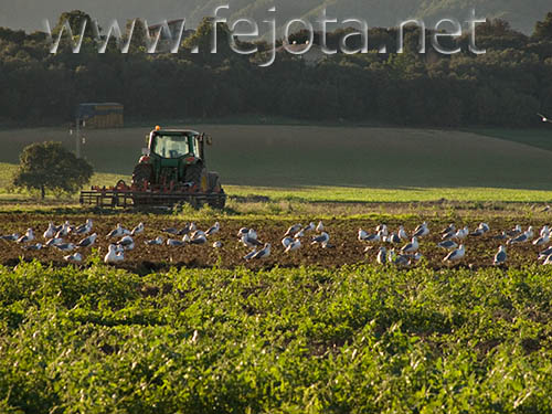 Catalunya Girona Naturaleza Seriny aves cultivo gaviotas labrador paisaje rural tractor verde