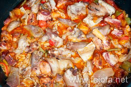 alimento careta_de_cerdo cocina gastronomía ingrediente oreja_de_cerdo pimiento_rojo pimiento_verde rabo_de_cerdo sofrito zanahoria