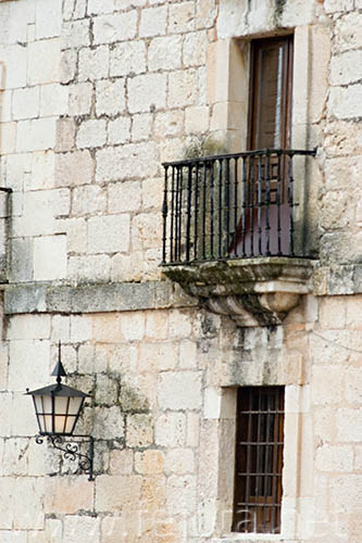 Balcón Burgos Castilla_y_León La_Vid Monasterio_de_Santa_María_de_la_Vid abadía detalle farol iluminada románico siglo_XII vertical