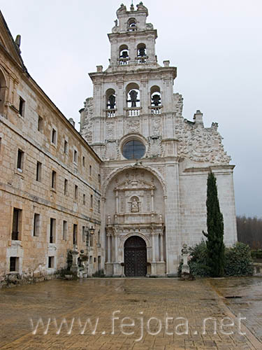 Burgos Castilla_y_León La_Vid Monasterio_de_Santa_María_de_la_Vid abadía campanario detalle espadaña puerta_barroca románico siglo_XII vertical