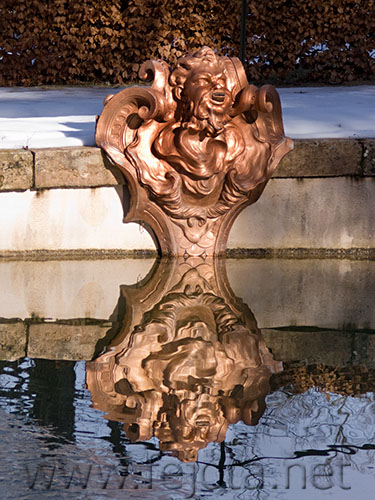 Castilla_y_León La_Granja_de_San_Ildefonso Parque Segovia detalle estatua fuente jardines mitología nevada vertical