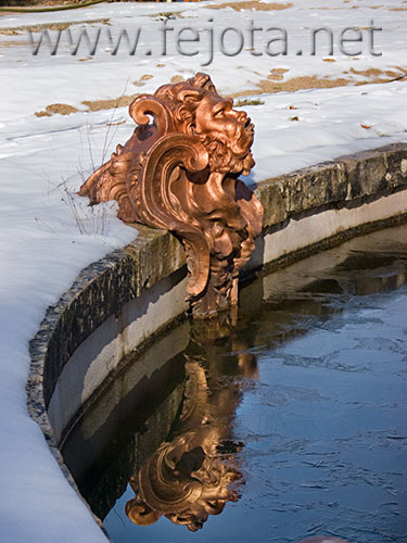 Castilla_y_León La_Granja_de_San_Ildefonso Parque Segovia detalle estatua fuente jardines mitología nevada vertical