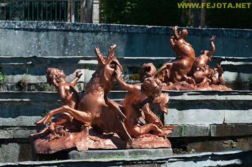 Castilla_y_León La_Carrera_de_Caballos La_Granja_de_San_Ildefonso Parque Segovia delfines escultura fuente fuente_de_Apolo jardines mitología tritones