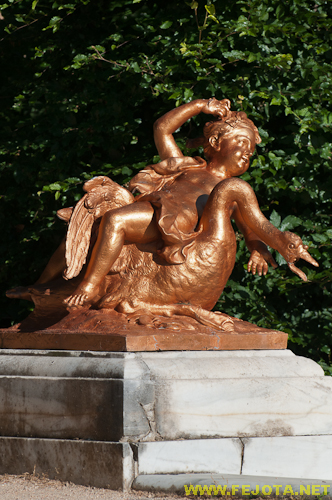 Castilla_y_León La_Granja_de_San_Ildefonso Parque Segovia cisne detalle escultura fuente_de_las_ocho_calles geniecillo jardines mitología vertical