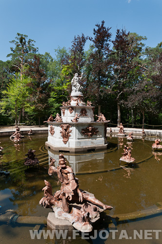 Apolo Castilla_y_León Diana La_Granja_de_San_Ildefonso Parque Segovia escultura fuente_de_la_diosa_Latona fuente_de_las_ranas jardines mitología ranas vertical