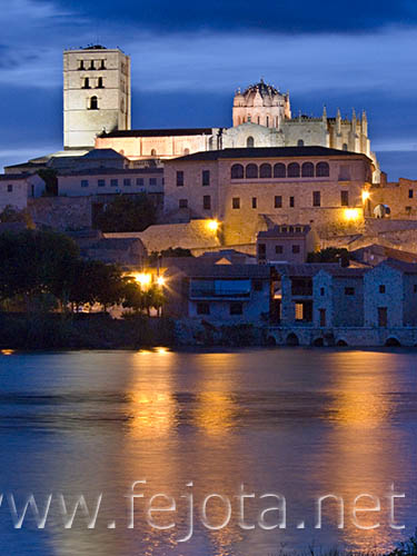 Catedral Duero Torre Zamora atardecer cimborrio iluminada siglo_XII vertical