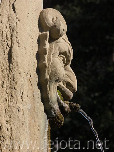 Catalunya Girona Sant_Joan_de_les_Abadesses caño claroscuro conde_Arnau detalle estatua fuente máscara vertical