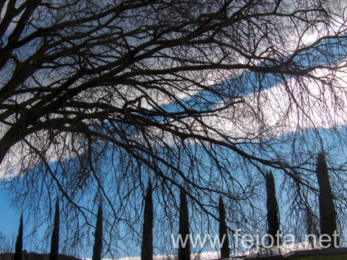 Catalunya Girona Peratallada cielo cipreses contraluz ramaje vegetación