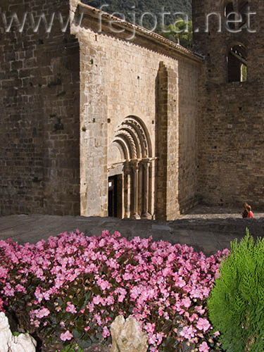 Iglesia puerta Beget Girona Catalunya vertical