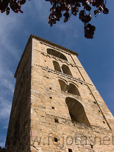 Iglesia torre campanario Beget Girona Catalunya vertical