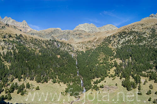 pinos torrente cumbres picos cimas ladera Pirineos Benasque Huesca