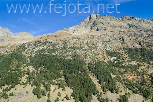 pinos torrente cumbres picos cimas ladera Benasque Huesca