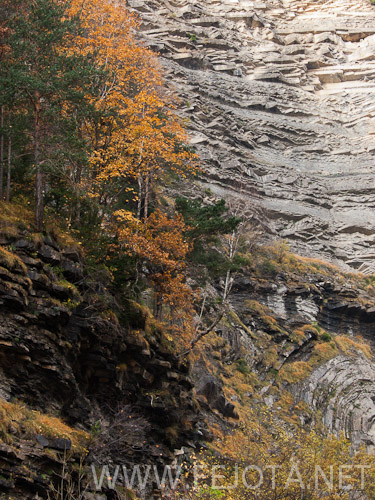 Acantilado Aragón Broto Huesca Naturaleza Otoño Pirineos bosque paisaje vertical rboles