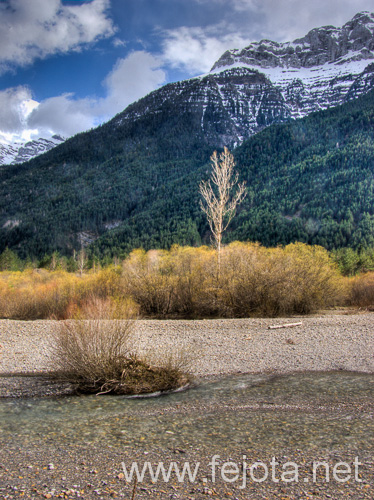 Aragón Aínsa Huesca Pirineo Sierra_de_Guara montaña nieve paisaje parque_natural río vertical