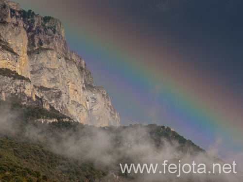 Aragón Aínsa Huesca Pirineo Sierra_de_Guara arco_iris cielo montaña nubes paisaje parque_natural