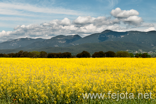 Catalunya Girona Seriny amarillo cielo colza cultivo montaña nubes paisaje rural