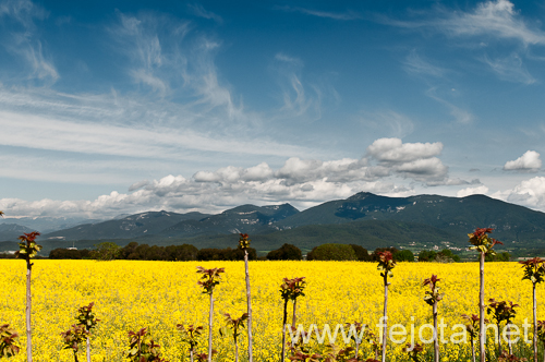 Catalunya Girona Seriny amarillo cielo colza cultivo montaña nubes paisaje rural