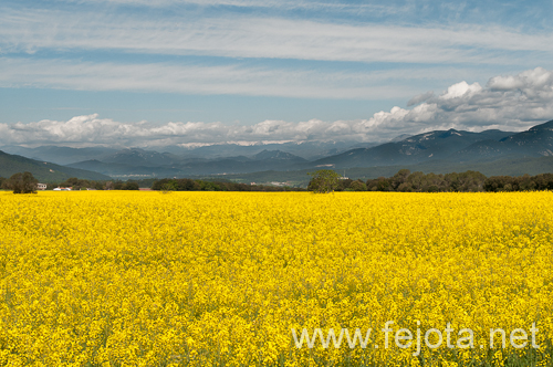 Catalunya Girona Seriny amarillo cielo colza cultivo montaña nubes paisaje rural