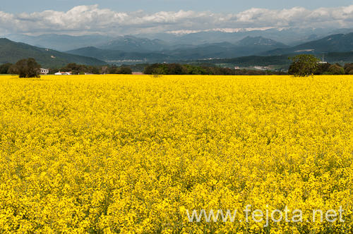 Catalunya Girona Seriny amarillo cielo colza cultivo montaña nubes paisaje rural