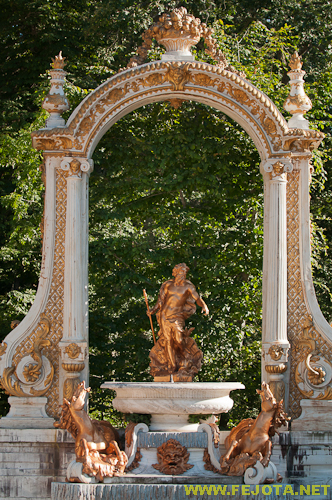 Castilla_y_León La_Granja_de_San_Ildefonso Neptuno Parque Segovia escultura fuente_de_las_ocho_calles hipocampo jardines mascarón mitología tridente vertical