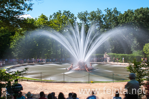 Castilla_y_León La_Granja_de_San_Ildefonso Parque Segovia cisnes escultura flores frutos fuente_del_canastillo gente jardines mitología náyades surtidor