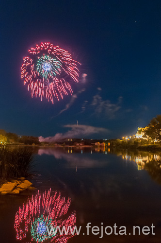 Castilla_y_León Zamora aceñas feria fuegos_artificales nocturna reflejo río_Duero vertical