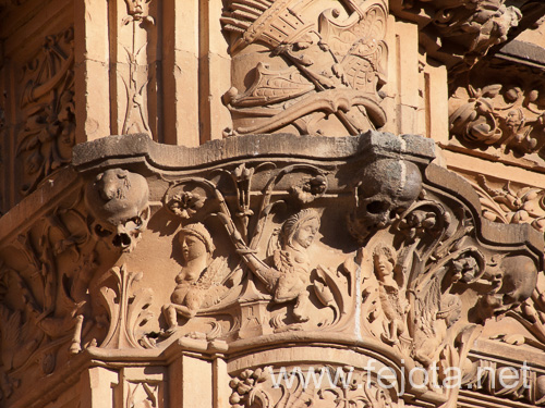 Castilla_y_León Salamanca Universidad arquitectura calavera detalle fachada pilastra plateresco rana sigloXVI