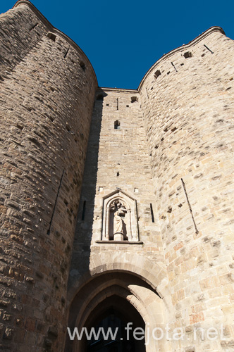 Aude Carcassonne Francia Languedoc_Roussillon Torres ciudadela edificación medieval muralla patrimonio_de_la_humanidad puerta_de_Narbona vertical