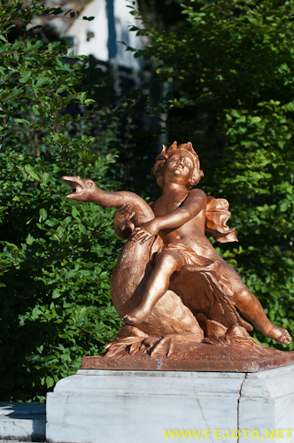 Castilla_y_León La_Granja_de_San_Ildefonso Parque Segovia cisne detalle escultura fuente_de_las_ocho_calles geniecillo jardines mitología vertical