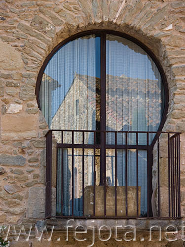 Balcón Catalunya Girona Monells Pueblo medieval piedra pintoresco reflejo vertical