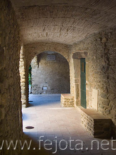 Catalunya Girona Monells Pueblo arco medieval piedra pintoresco vertical