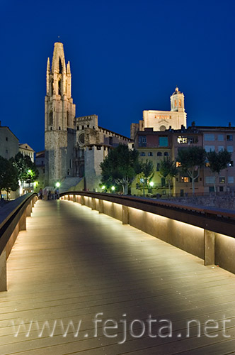 Catalunya Girona Iglesia SXIV iluminada nocturna vertical