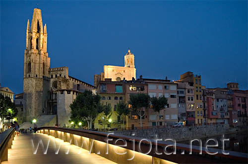 Catalunya Girona Iglesia SXIV iluminada nocturna