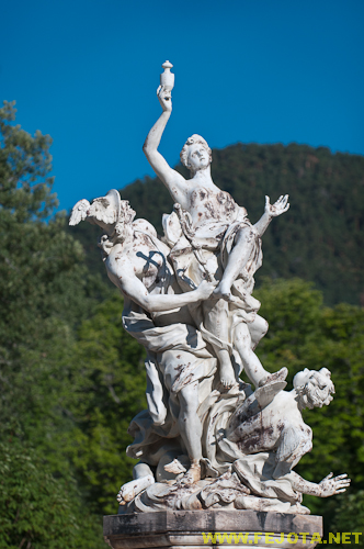 Castilla_y_León La_Granja_de_San_Ildefonso Mercurio Pandora Parque Segovia detalle estatua fuente_de_las_ocho_calles jardines mitología rencor vertical
